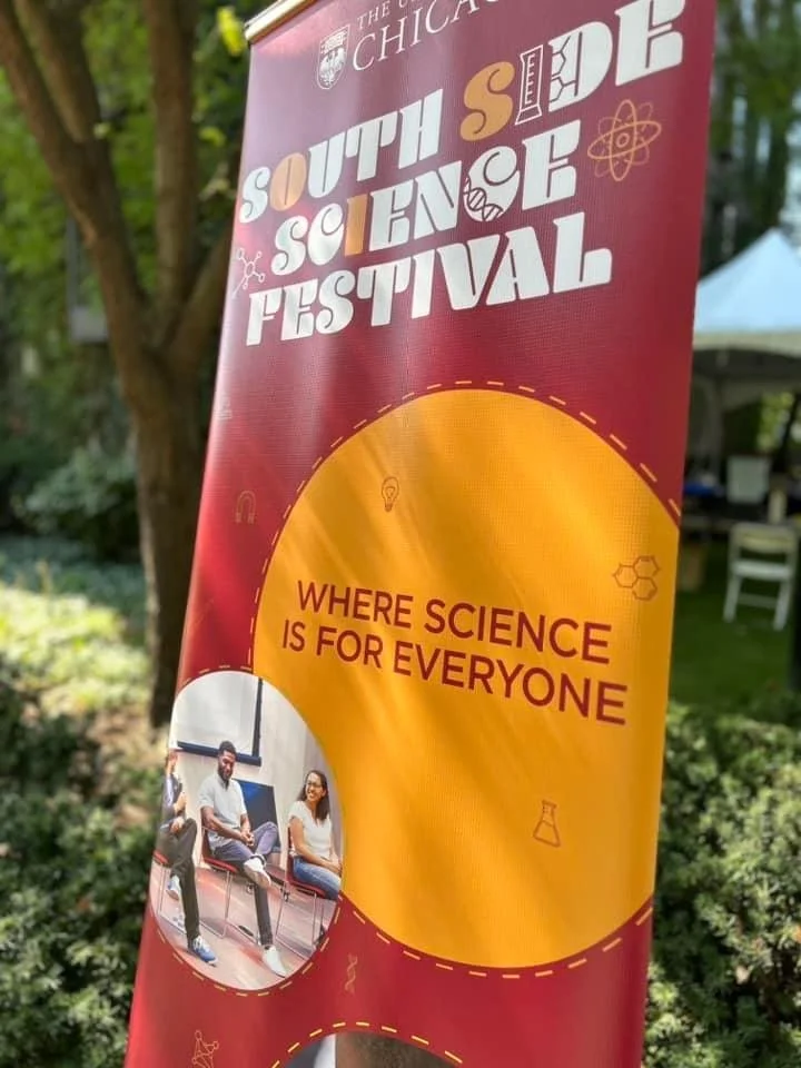Created in 2022, the South Side Science Festival brings the South Side and UChicago communities together for a day of fun outdoor science exploration, inspiring exchanges with faculty and student researchers, live experiments and demonstrations, food, and music.